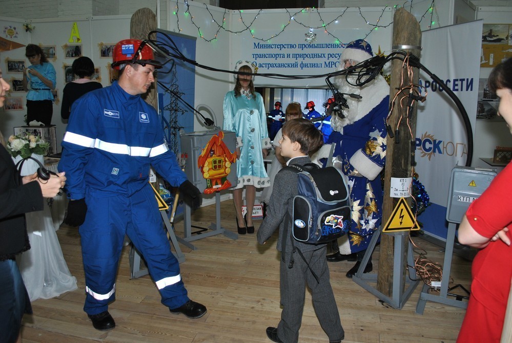 Сюжет презентации, в которой были задействованы представители профильного министерства, МРСК Юга, а также дети сотрудников был разыгран, как спектакль в миниатюре в духе приближающихся новогодних праздников и состоял в следующем: электромонтеру по заявке потребителя – Деда Мороза необходимо подключить к воздушной линии электропередачи 0,4 кВ Новогоднюю елку. С помощью макета воздушной линии электропередачи 0,4 кВ, выполненной с применением самонесущего изолированного провода, энергетики продемонстрировали участникам выставки оперативное подключение потребителей с использованием современных технологий. А также, с помощью мальчика Саши, роль которого исполнил сын сотрудников астраханского филиала МРСК Юга, энергетики еще раз напомнили о необходимости соблюдать правила электробезопасности, подарив зрителям красочные тетрадки и памятки с правилами поведения вблизи энергообъектов.